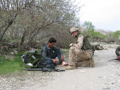 In February 2006, Andrew (nicknamed Boomer by his comrades) left for Afghanistan. His mother’s worry was countered by his letters, filled with pride at being able to assist where there was need and his commitment to service. Pictures revealed the difficult conditions he and his fellow soldiers endured.